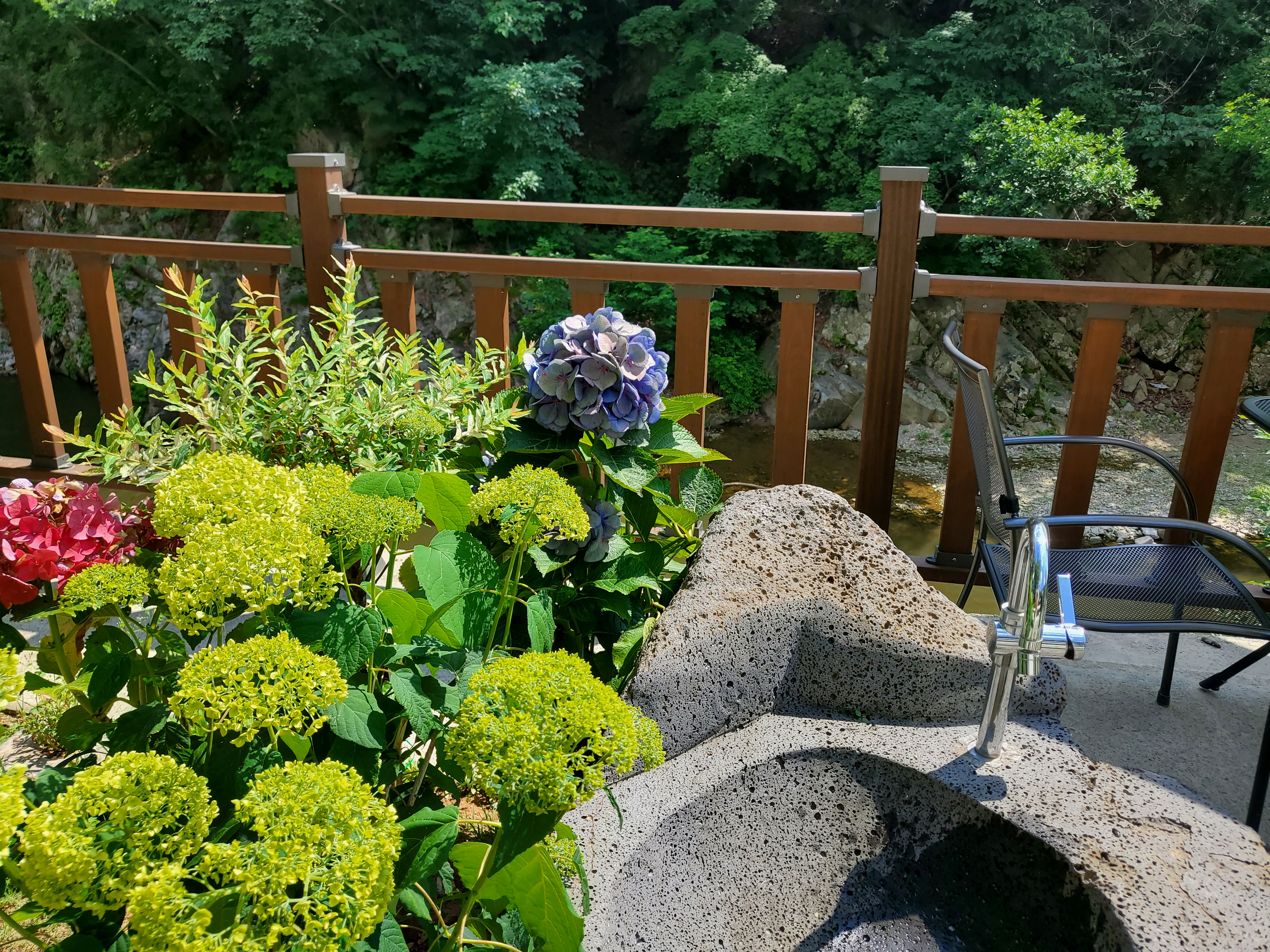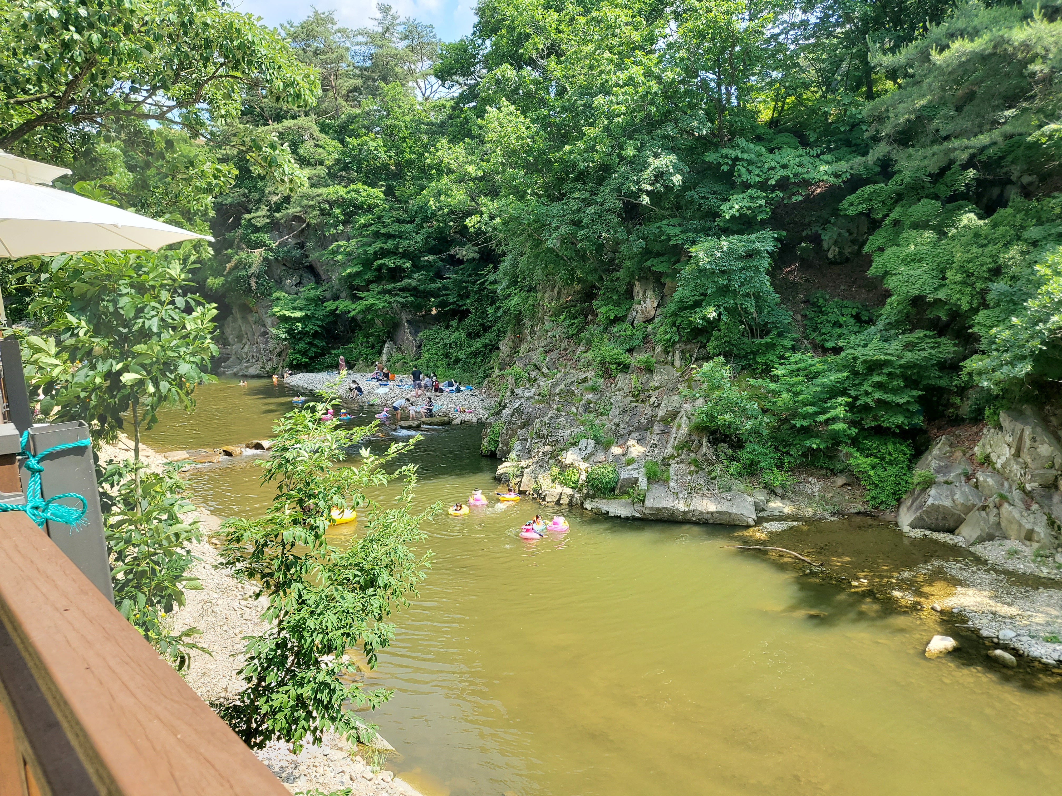 옆에는 계곡이 있고,