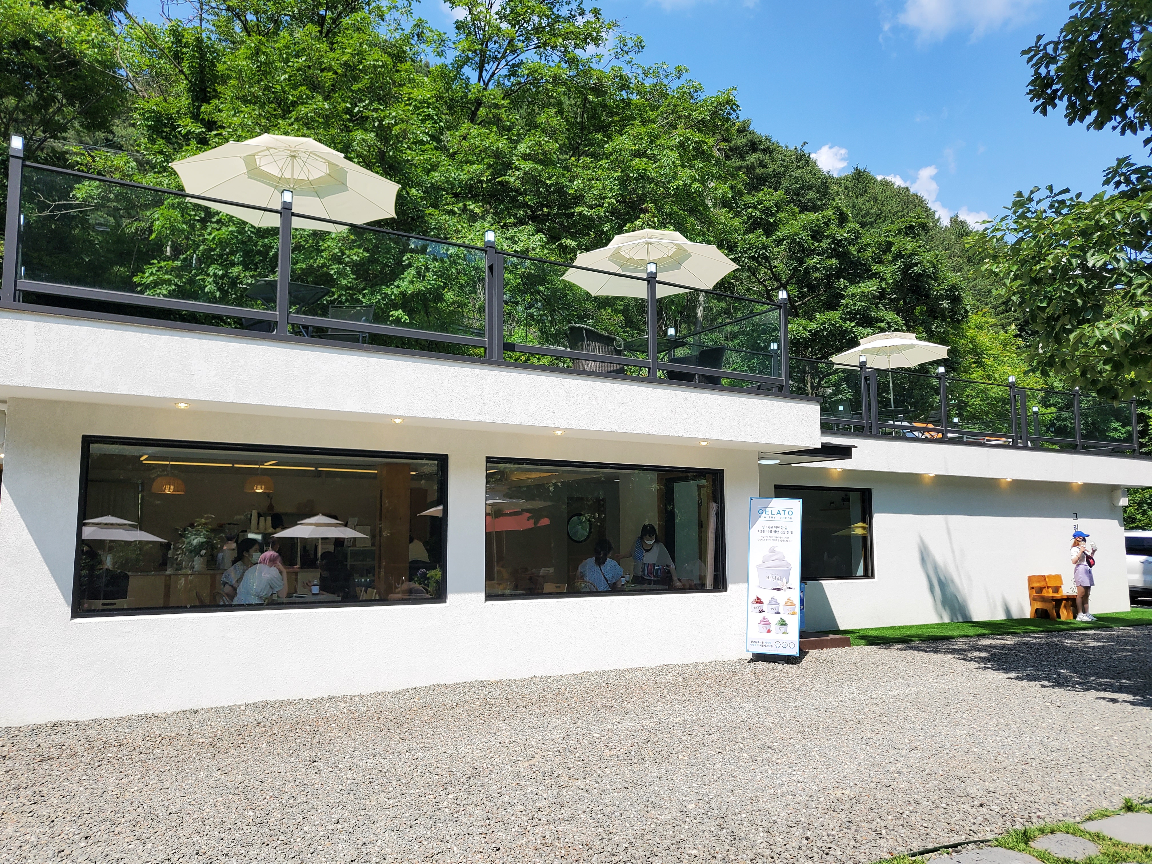 저희는 야외테이블에 자리 잡았어요!