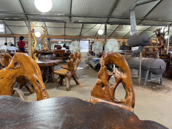 의자와 테이블이 모두 나무로 되어있어요!
