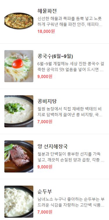 저희는 콩국수(시즌 메뉴)와 두부