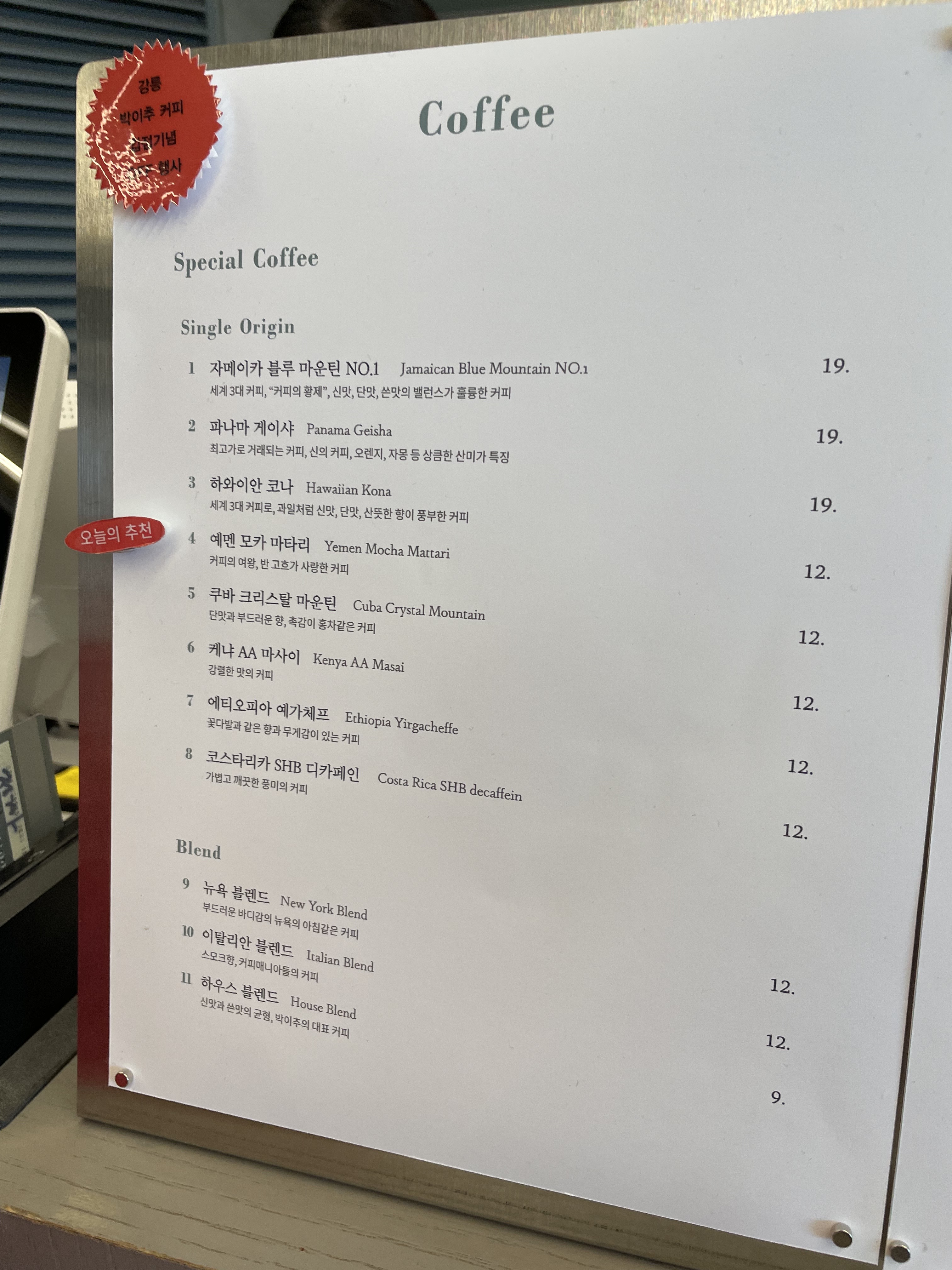 커피 1잔에 19,000원..^^