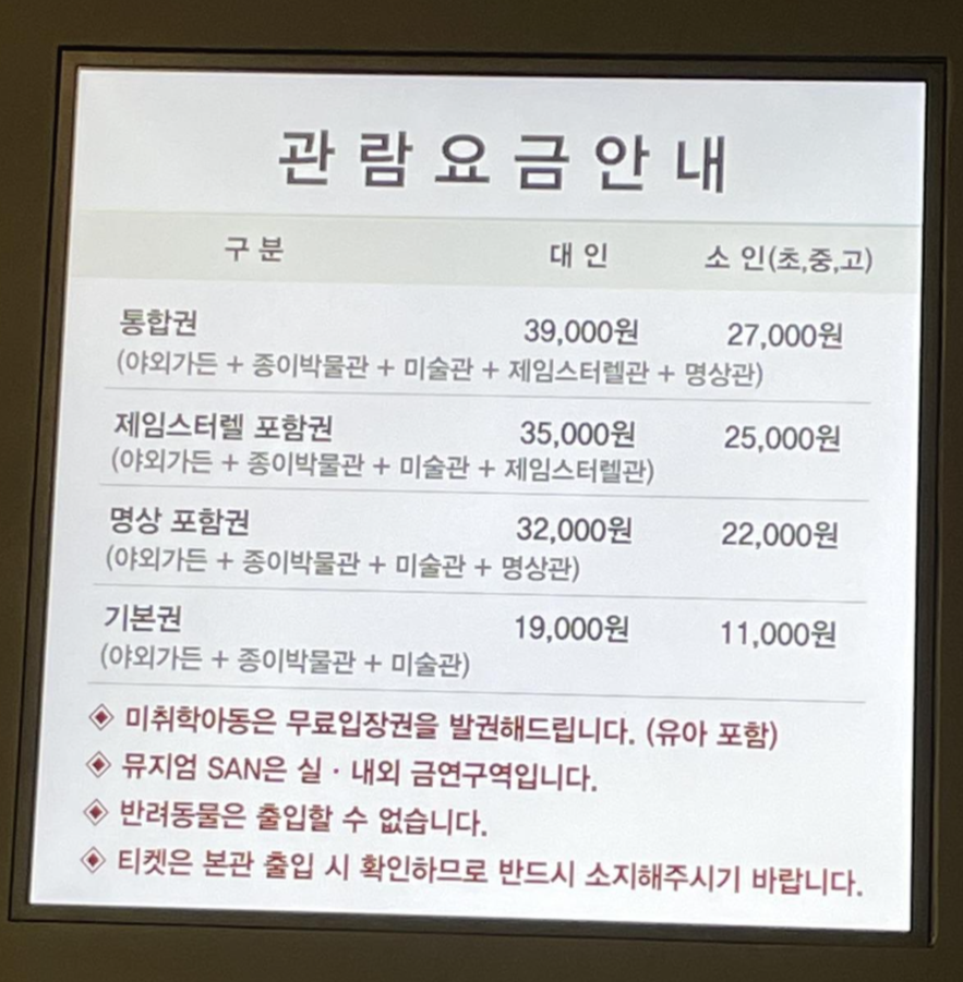 저희는 기본권 19,000원으로 다녀왔어요.