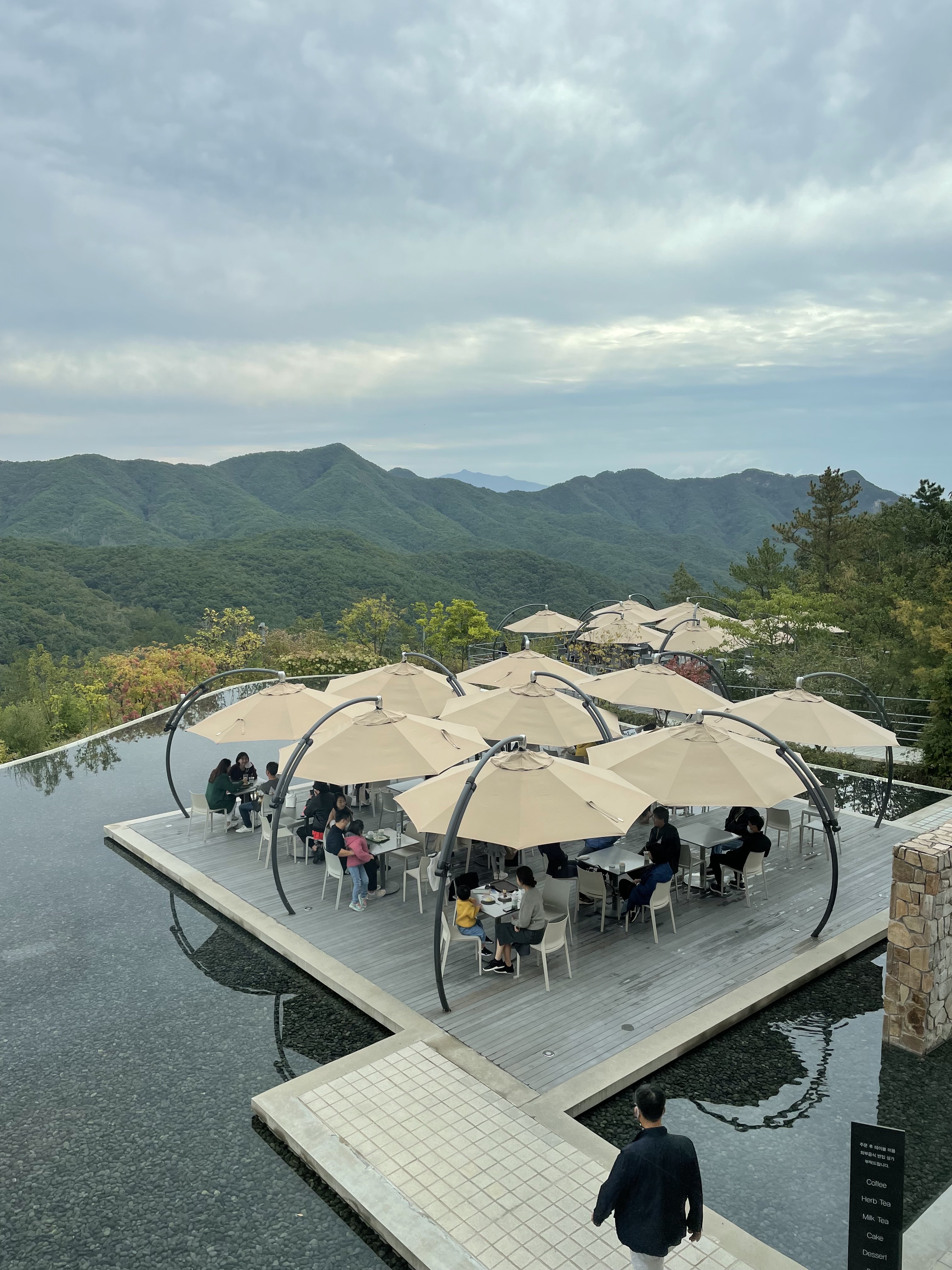 추운 날씨에도 다들 바깥에 앉아 뷰를 놓치지 않는!