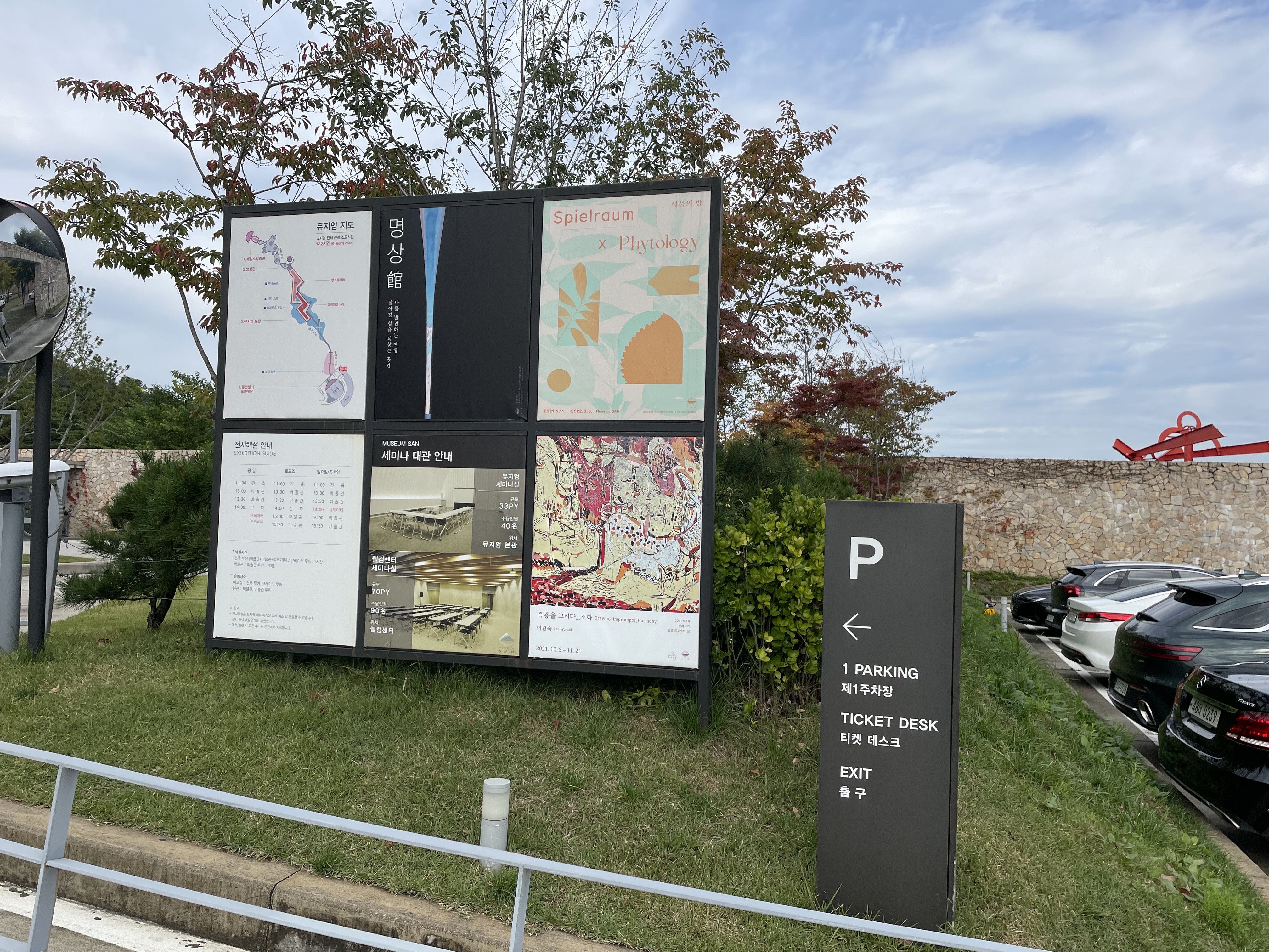 주차 공간은 밖과 뮤지엄 바로 앞에 있는데,