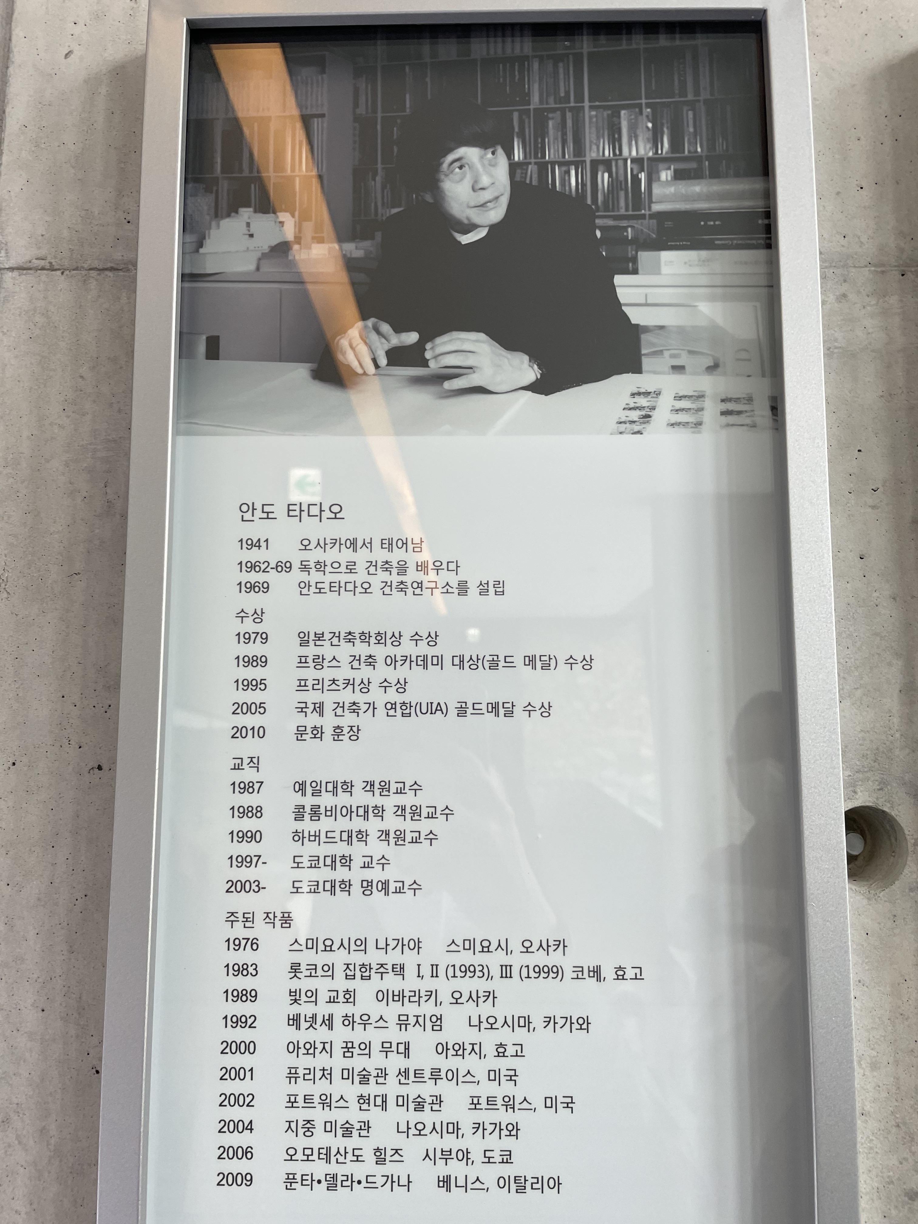 건축가 안도 타다오에 대해서도 소개하고 있어요.